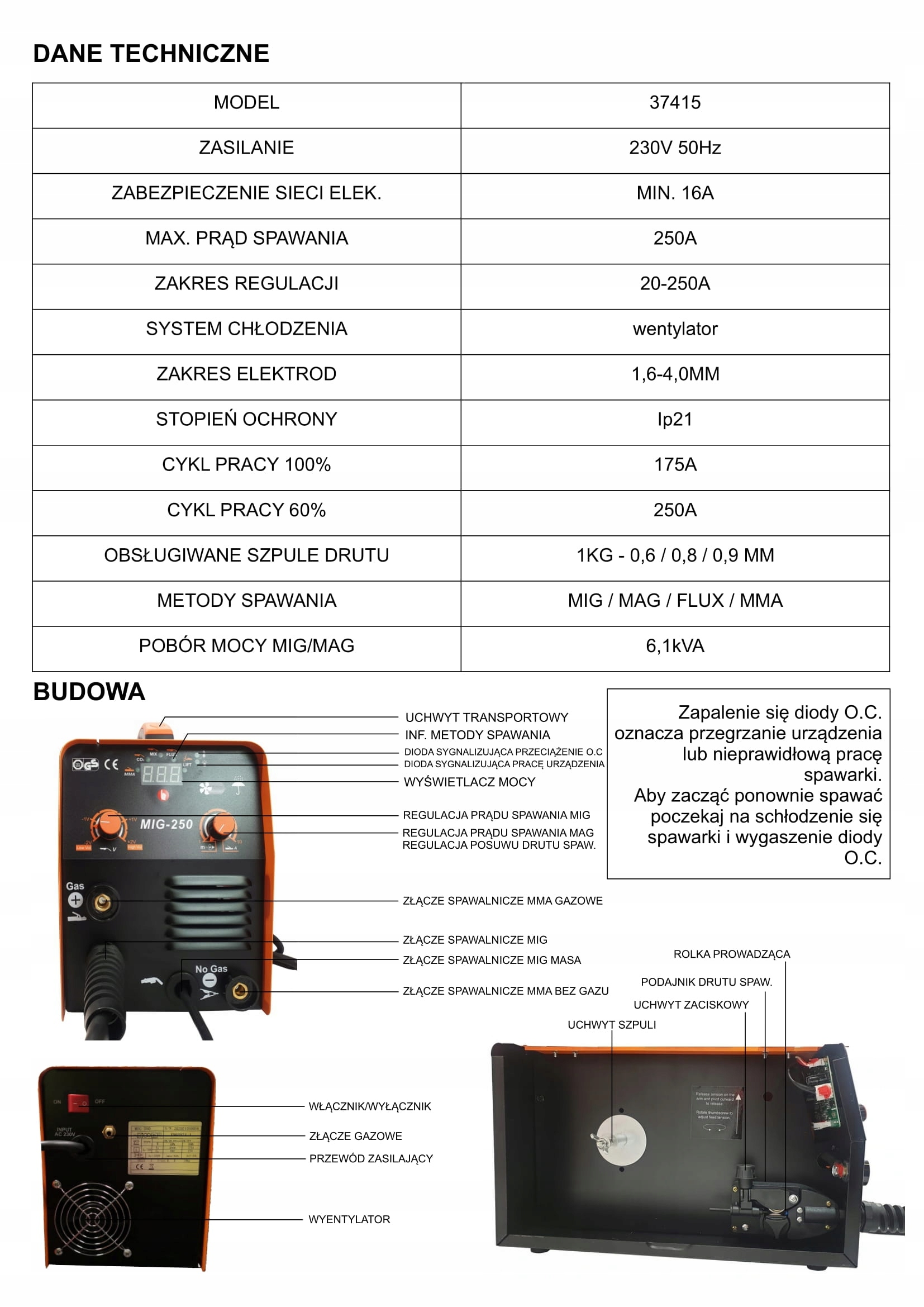 SPAWARKA MIG-MAG 250A MIG / MAG / FLUX / MMA (37415)